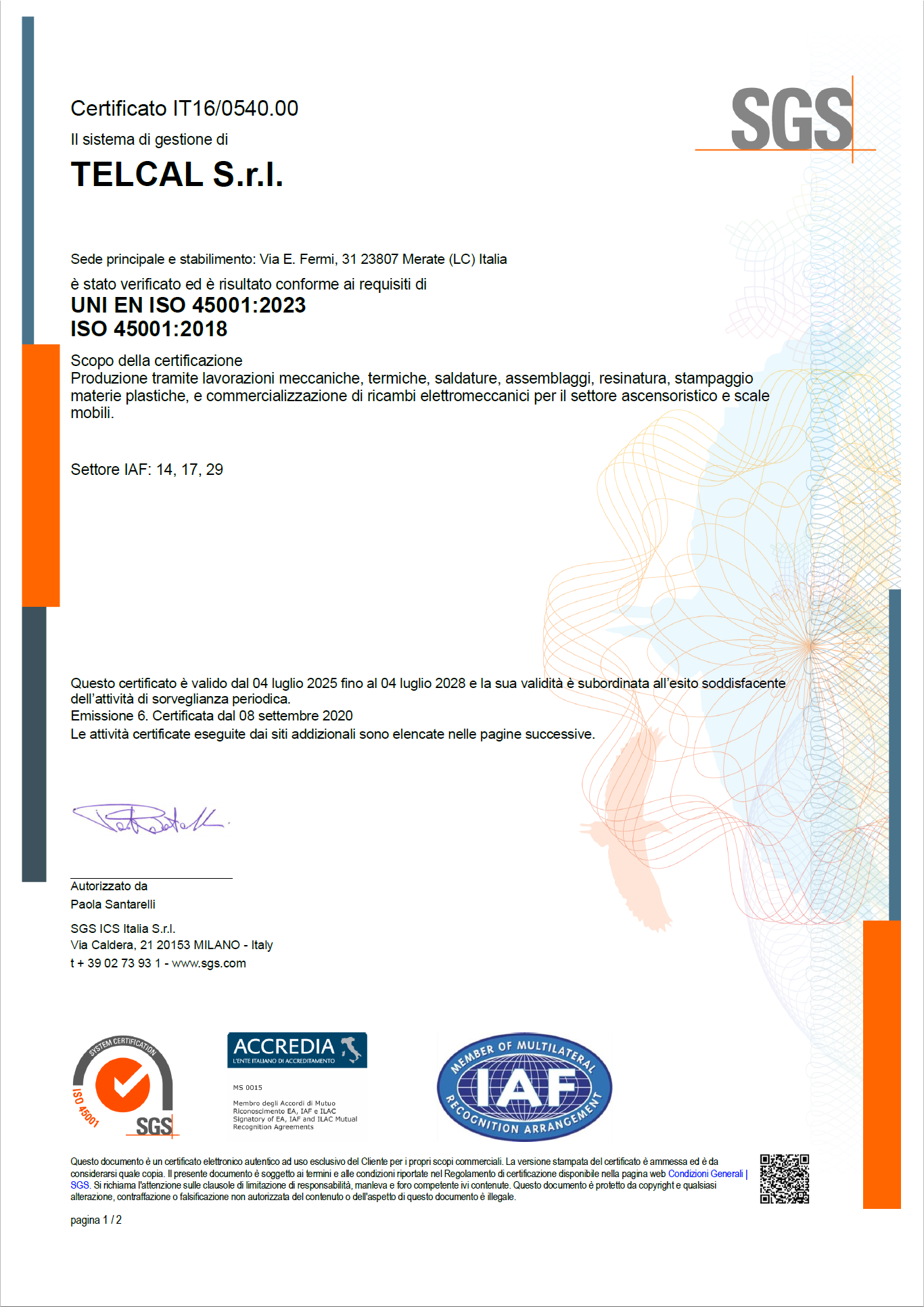 Telcal è certificata secondo le normative: