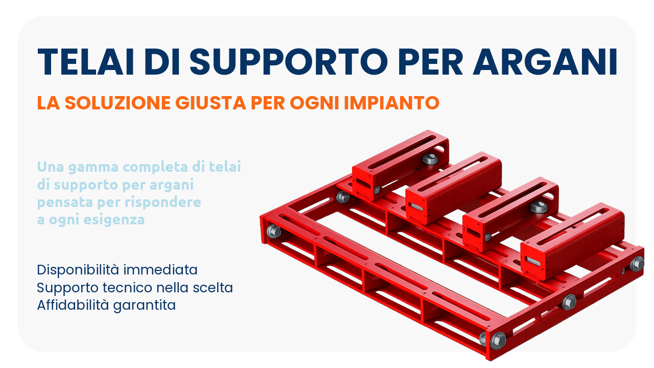 Per questo mettiamo a disposizione una gamma completa di telai di supporto per argani, pensata per rispondere a ogni esigenza: