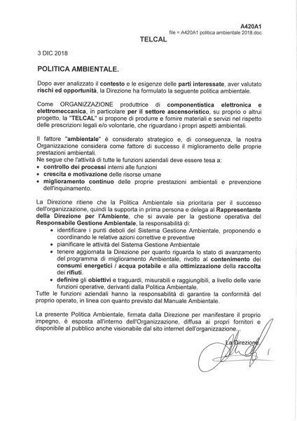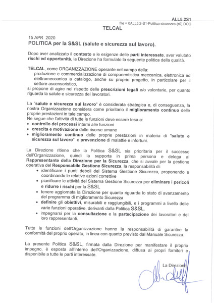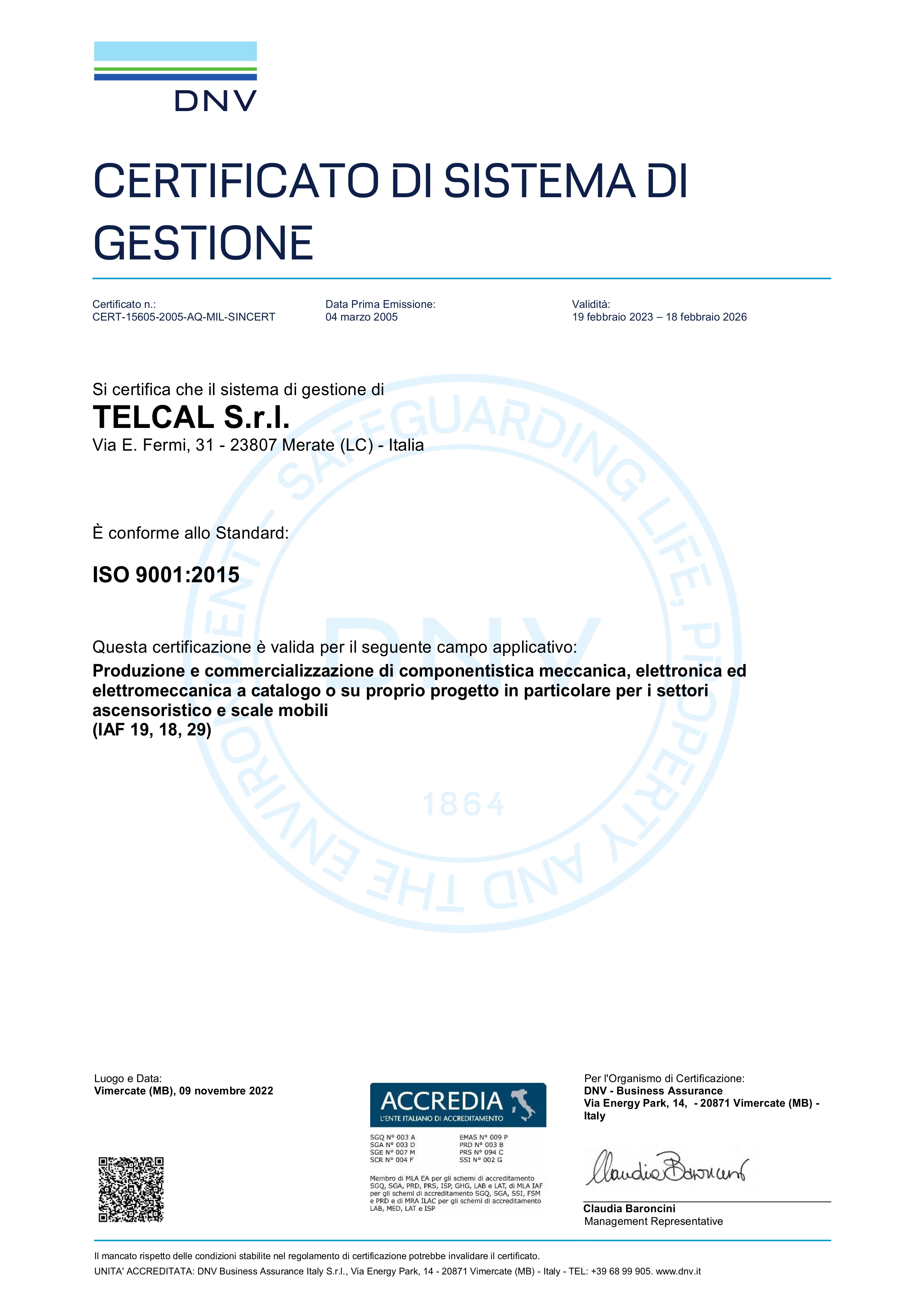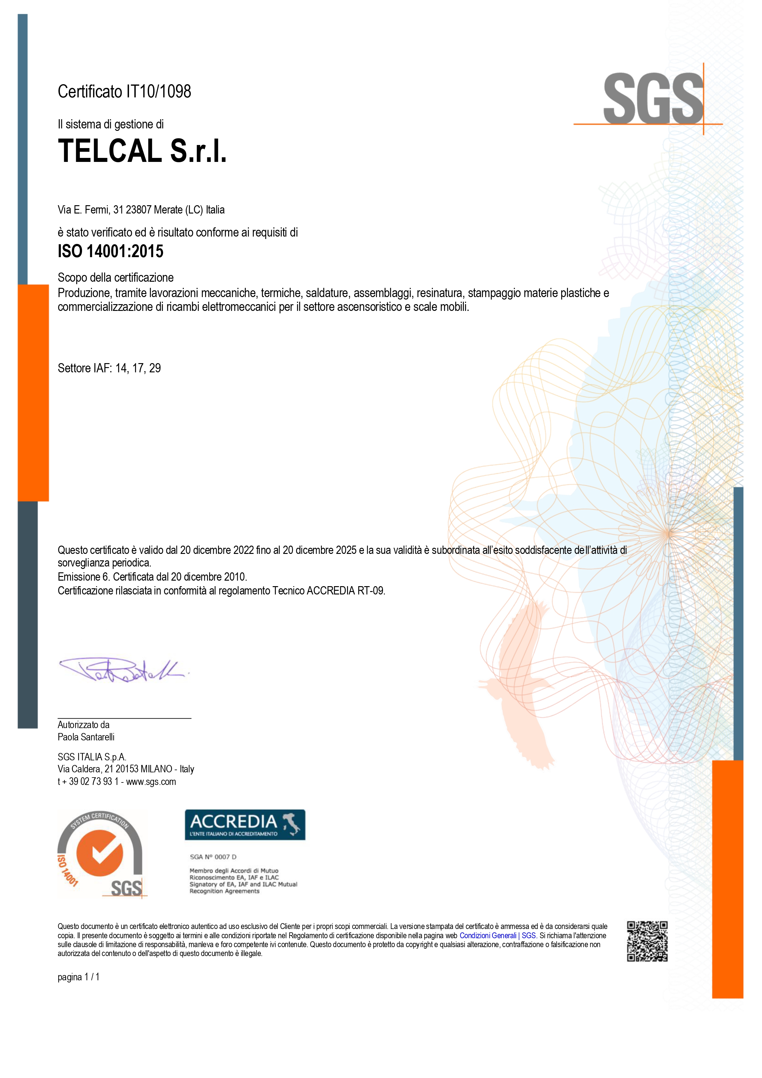 Telcal è certificata secondo le normative: