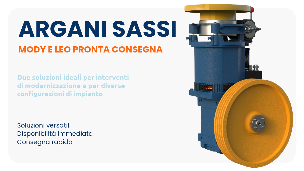 Siamo lieti di comunicare la disponibilità immediata a magazzino degli argani SASSI MODY e LEO, due soluzioni ideali per interventi di modernizzazione e per diverse configurazioni di impianto ascensore.