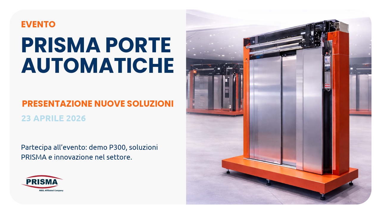 Uno dei momenti principali dell’evento sarà la demo dal vivo della porta ascensore P300, che permetterà ai partecipanti di osservare direttamente il funzionamento e le caratteristiche tecniche del prodotto. Questa dimostrazione pratica rappresenta un’occasione concreta per approfondire le prestazioni delle porte automatiche per ascensori PRISMA e valutarne l’applicazione in diversi contesti.