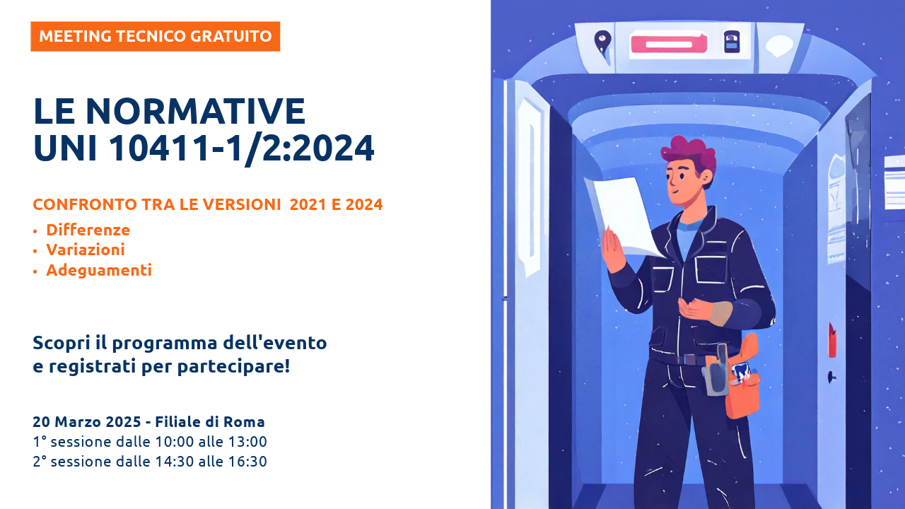 L'evento è dedicato alle nuove norme UNI 10411-1/2:2024 Confronteremo le versioni 2021 e 2024 – vedremo differenze, variazioni e adeguamenti